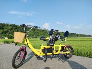 此款電動協力車是家庭出遊最佳首選,兩大一小的組合、兒童安全椅設計在兩位大人中間,極具安全性和溫馨感,續航力遠、穩定,是家庭的第一首選