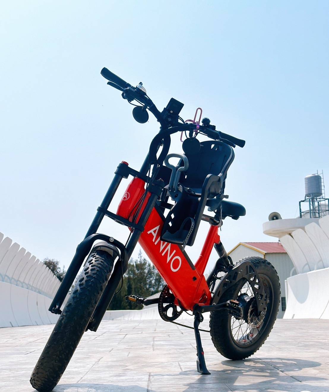 高級胖胎電輔車親子款式,在原先的 ANNO BIKE 前方安裝一款極為安全的兒童座椅,適用於5歲以下兒童都可以乘坐,讓小孩跟大人一同體驗胖胎車的魅力,騎乘於路面依舊穩定度高、速度快和馬力強。
